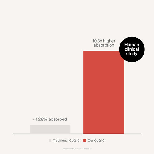 NuQ10™ uses Nusomes™ delivery to dramatically improve CoQ10 absorption, so more reaches circulation instead of going unused.