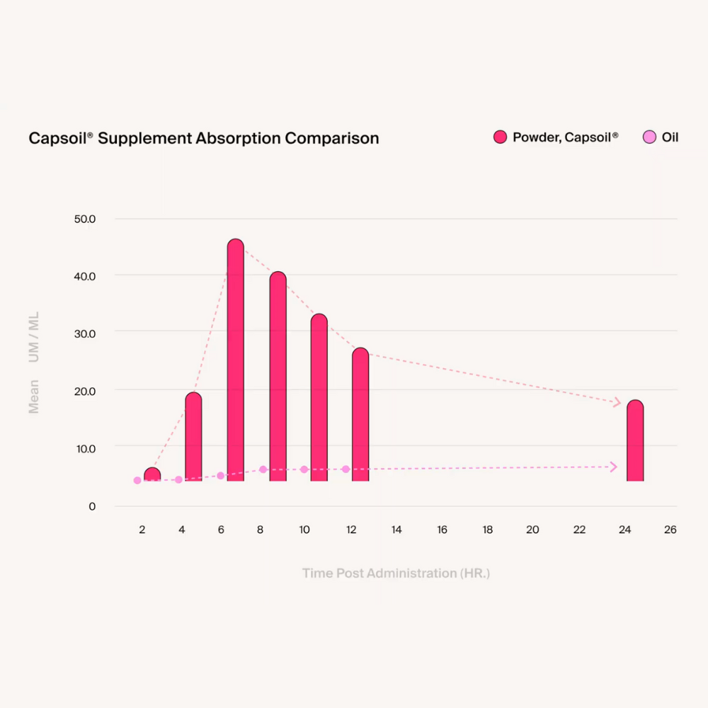 By using groundbreaking Capsoil® technology along with ingredients in their most bioavailable form we have increased absorption rates of key nutrients by up to 500%.